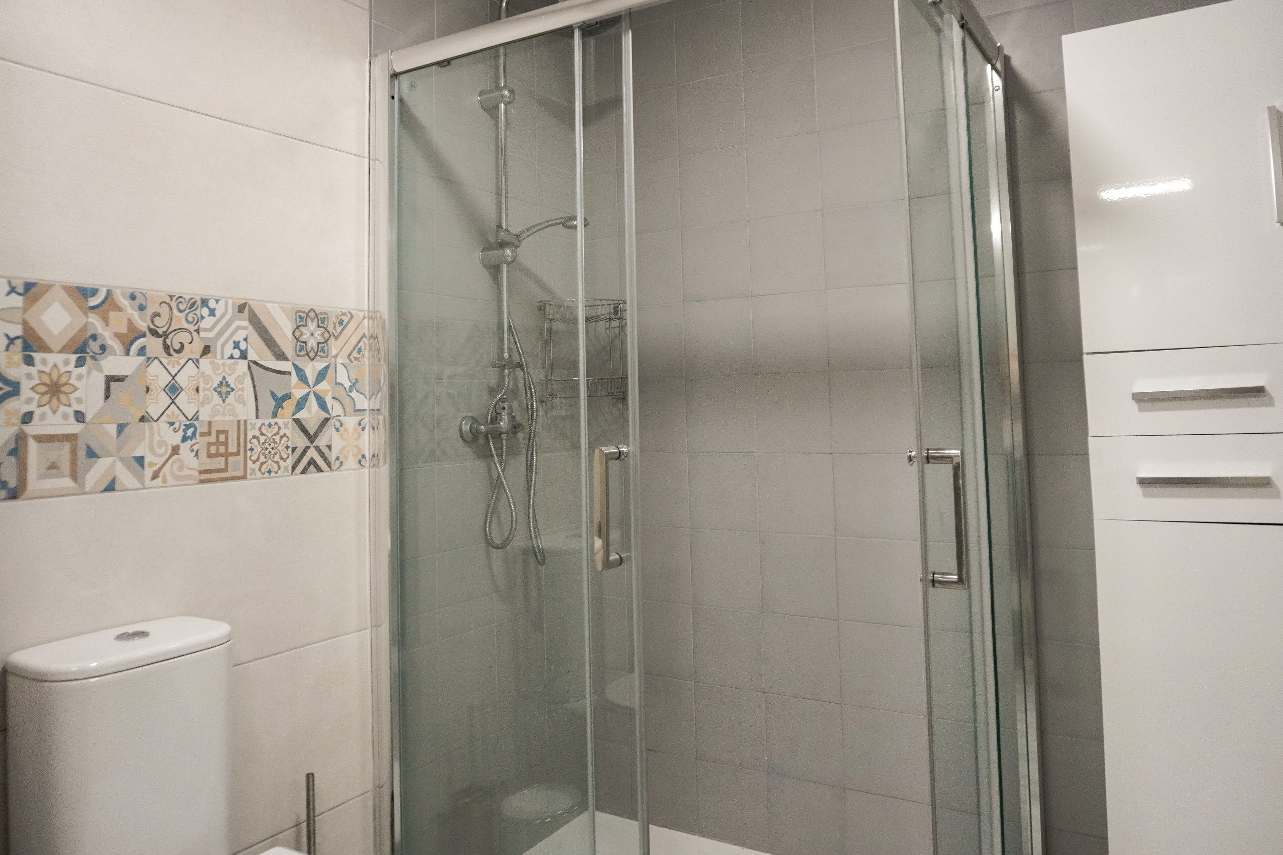 Dispone de dos habitaciones cómodas, un salón luminoso con cocina americana totalmente equipada y un balcón privado, perfecto para disfrutar del café de la mañana o descansar al final del día. El baño moderno cuenta con una amplia ducha con mampara de cristal, aportando un toque fresco y elegante.