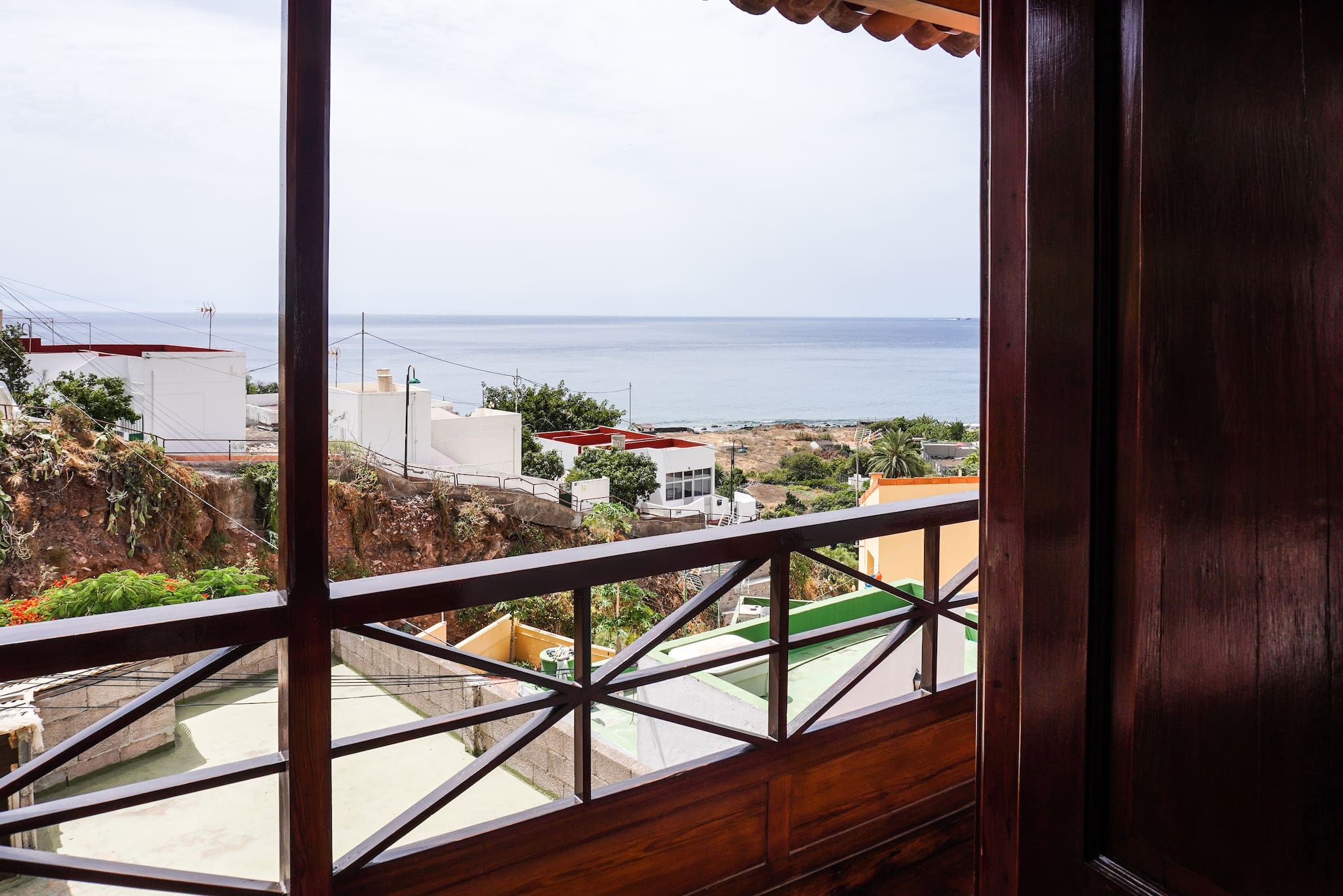 Accederemos a la vivienda por el amplio y acogedor porche donde podrá disfrutar en la parte techada de comidas y cenas en su comedor exterior, o relajarse y tomar el sol en las tumbonas. Una vez dentro de la vivienda nos econtraremos con el salón comedor por el que accederemos al patio trasero donde podremos preparar barbacoas, y también encontraremos la lavadora, así como una ducha exterior donde poder refrescarnos. En esta misma planta se encuentra la cocina y el baño completo. Subiendo, a través de unas escaleras de madera, llegaremos a la segunda planta donde está ubicado un cómodo aseo, y las dos habitaciones, una con cama de matrimonio y otra con dos camas individuales. Así como también podremos acceder al gran balcón de madera de estética tradicional canaria donde disfrutaremos de vistas a la playa.
